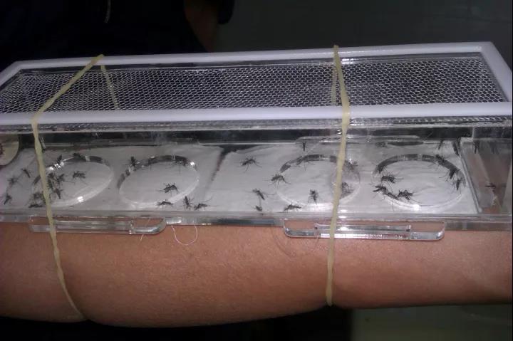 驅避法:具有一定攻擊力的蚊蟲置于有試樣的空間中,其中試樣附于在人體或供血器上,用驅避測試器法或吸血昆蟲供血器法,計數蚊蟲在待測試樣和對照試樣表面停落數,計數在規定的時間內蚊蟲在待測試樣和對照樣表面停落留數,以驅避率來評價織物的防蚊性能。