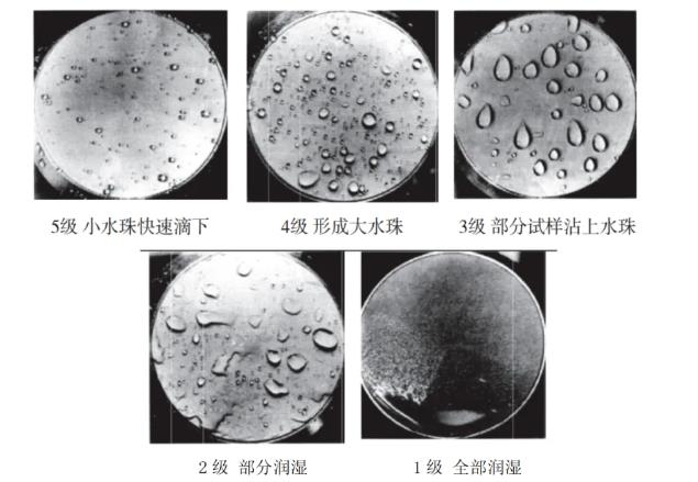 用參比樣照按照如下5級標準目測評定濕試樣的拒水性: